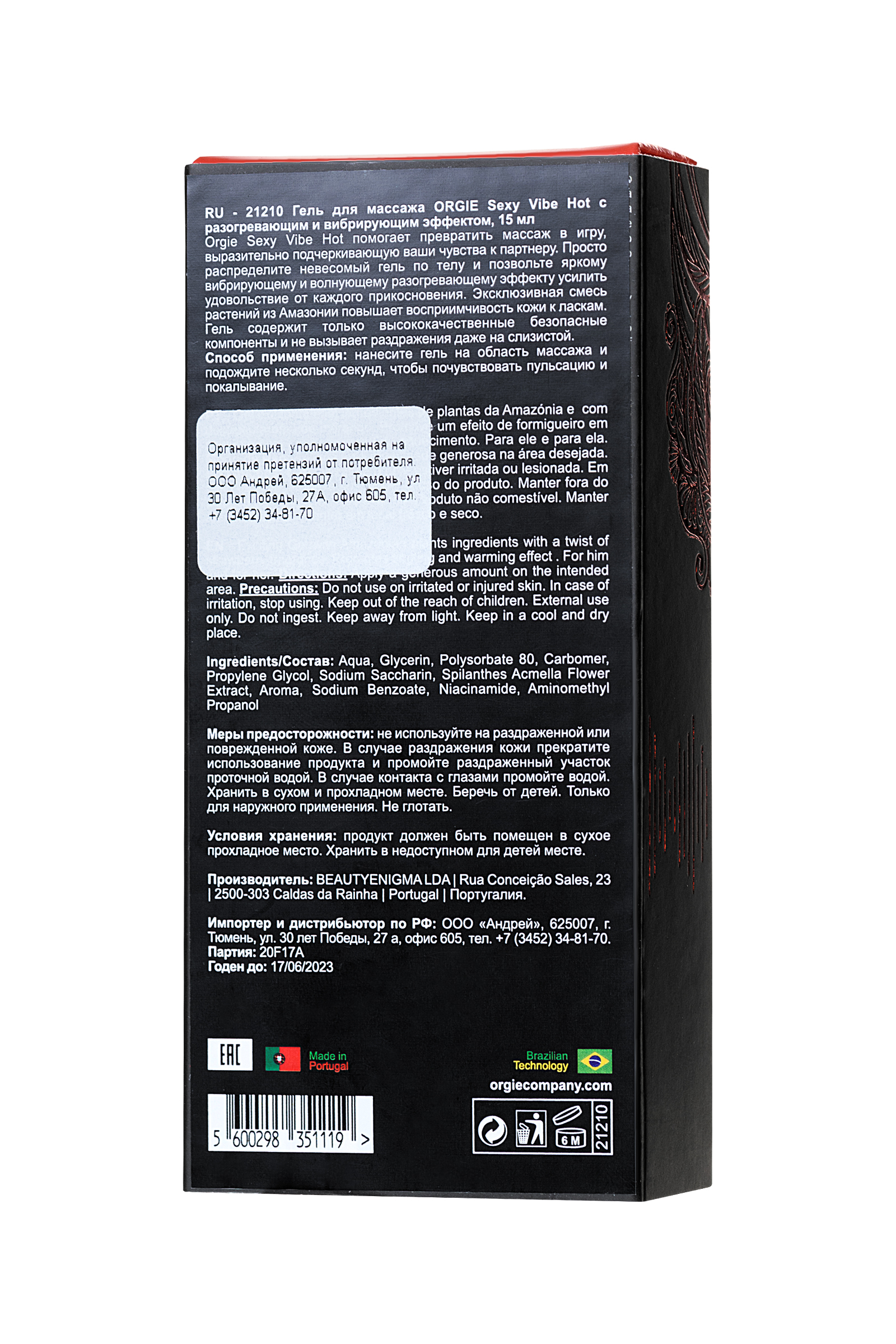 A special blend of herbs from the Amazon increases the skin's sensitivity to caresses. The gel contains only high-quality safe ingredients and does not cause irritation even to the mucous membranes.
