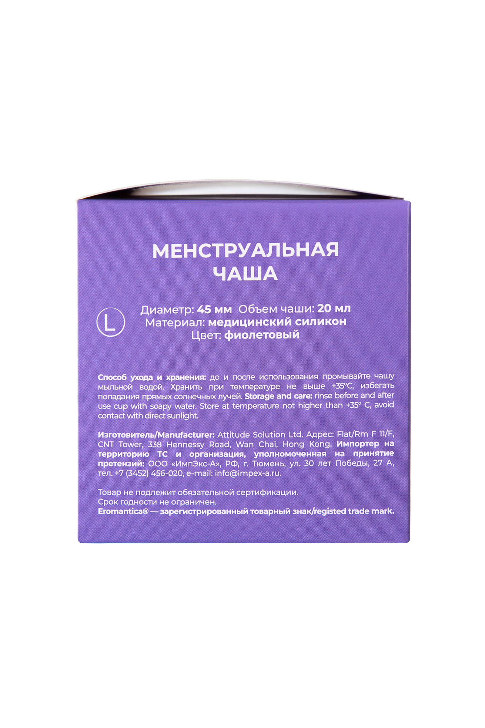 Eromantica Menstrüel Kupa, kadınların konforunu ve sağlığını ön planda tutarak üretilmiştir. Hipoalerjenik medikal silikon kullanılarak üretilen bu kupa, güvenli, tekrar kullanılabilir ve doğa dostudur.