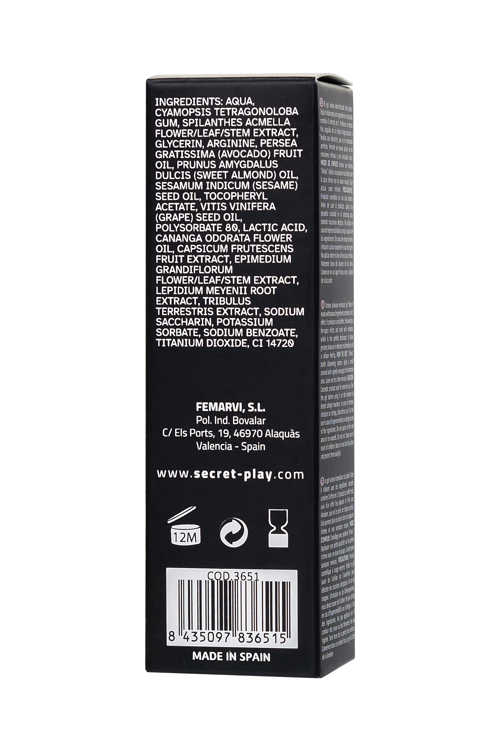 Yeni hisler isteyen ve denemeye hazır olan çiftler için aşırı bir deneyim. Vücudunuzun titreyebileceğine inanır mısınız? Secret Play’in orgazmların keyfi ve çılgınca gücü için gizli silahı, doğal ve kozmetik bileşenlerden yapılmış güçlendirici bir jeldir. Üçlü X, 3 etkiyi birleştirir: soğuk bir etki yaratır, ardından ateşli baharatlı bir ısı izler. Tüm büyünün doruk noktası bir titreşim olacaktır – tetikleyici, yıldızların çoğuna kozmik bir zevke girmeye hazır olun. Samimi sürecin inanılmaz keyfi, hayal bile edemeyeceğiniz eşsiz hisler. Samimi jel hem çift hem de yalnız olarak kullanılabilir. Soğuk ve ısı, titreşim dalgaları ile birlikte, birbiri ardına tüyler ürpertici ve karıncalanma ile yuvarlanır ve değiştirilir, sadece heyecana değil, aynı zamanda samimi bölgelerin uyarılmasından da benzersi.
