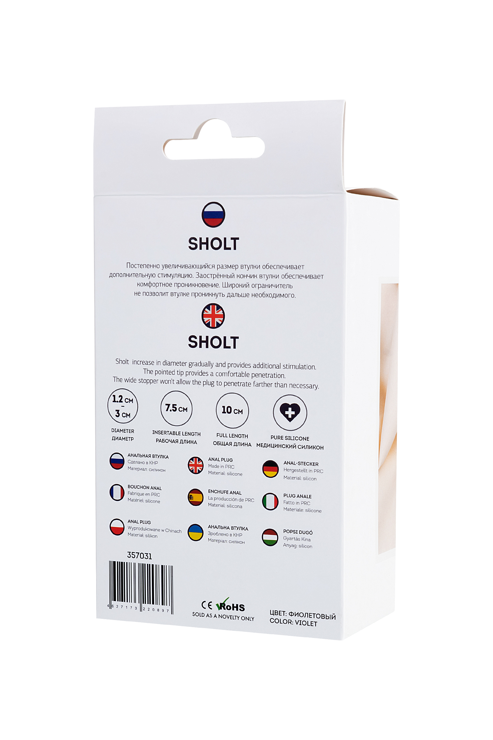 Sholt Kademeli olarak artan plug boyutu ek stimülasyon sağlar.Plugın sivri ucu rahat penetrasyon sağlar. Geniş sınırlayıcı, plugın gerekli olandan daha fazla girmesine izin vermez.
