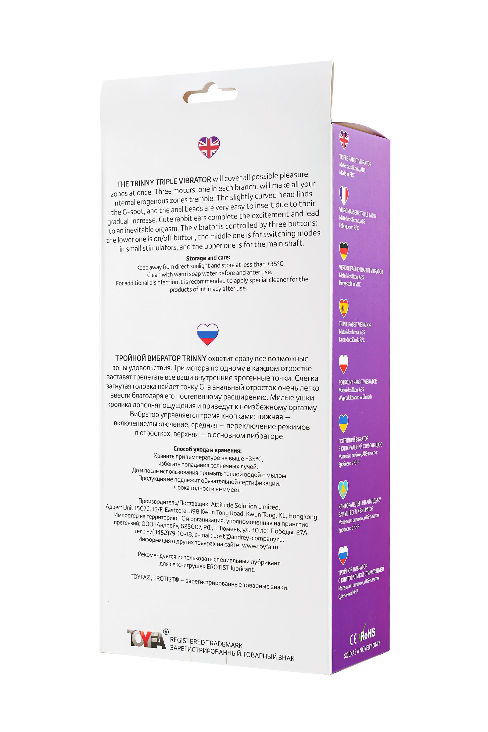 Trinny Triple Vibrator, üç motorlu tasarımı sayesinde aynı anda birden fazla erojen bölgeyi uyarmak için geliştirilmiş güçlü bir titreşimli uyarıcıdır. Eğimli başlığı G-noktasına ulaşmayı kolaylaştırırken, anal uzantı yumuşak yapısıyla rahat bir şekilde kullanılabilir. Tavşan kulakları klitoral uyarım sağlayarak orgazmı yoğunlaştırır.